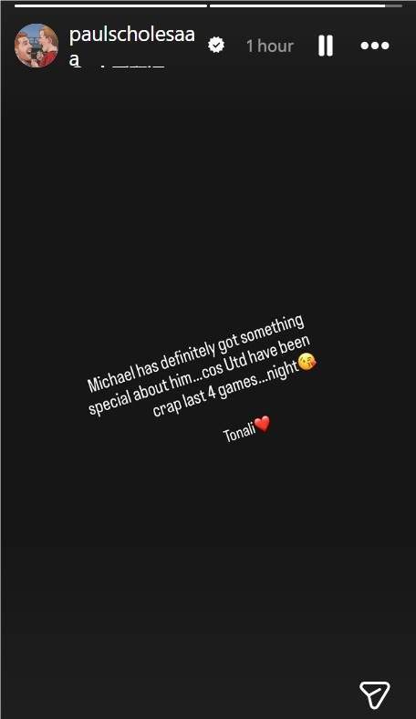“迈克尔(卡里克)身上肯定有某种特别之处……因为曼联最近4场比赛表现简直烂透了……晚安托纳利。”