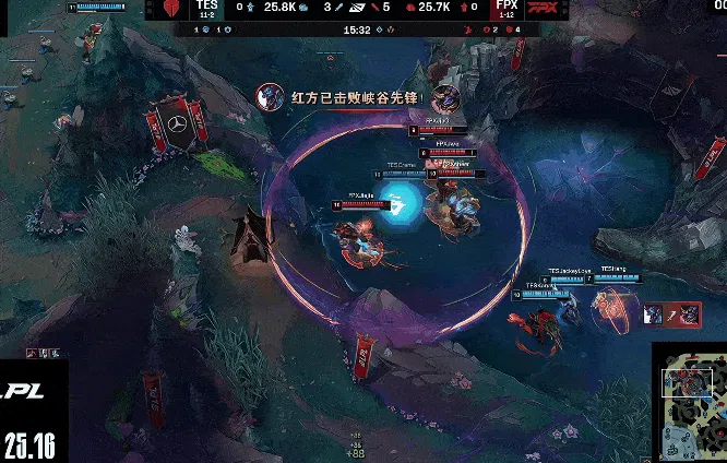华体会直播-Creme大招骗出FPX技能,TES上野大招配合TES一波打出1换4