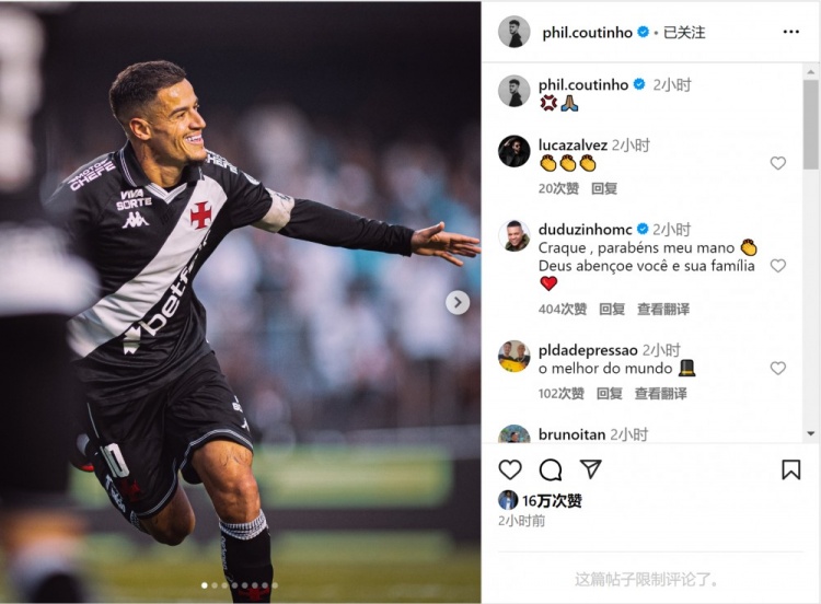 华体会直播-双响助球队大胜!库蒂尼奥社媒晒与内马尔赛场同框照 xiaoqiao 2025-08-22 西甲 64 0 8月18日讯 在北京时间今天凌晨进行的巴甲联赛中,库蒂尼奥梅开二度,帮助瓦斯科达伽马客场6-0大胜桑托斯,内马尔赛后落泪。库蒂尼奥社媒晒出多张赛场照片,庆祝球队取胜,其中包括与内马尔的赛场同框照。